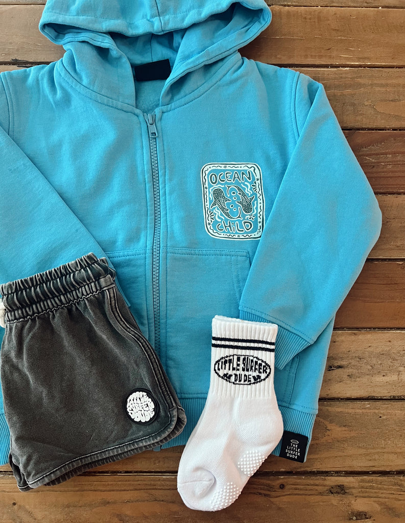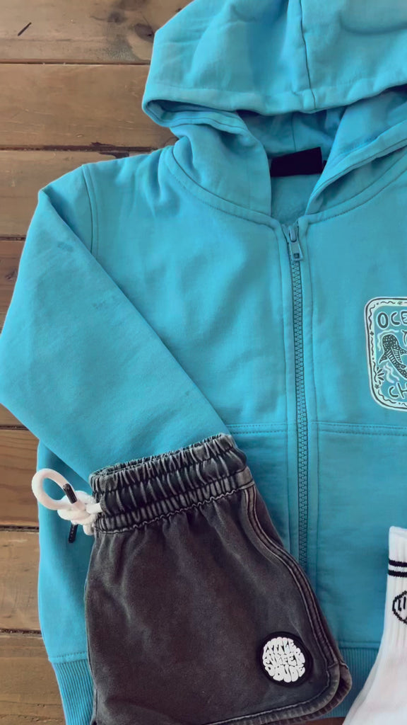 With a full front zip, cozy hood, and roomy pockets, it’s as practical as it is cool. Surf-inspired and kid-approved — the perfect grab-and-go layer for when the breeze rolls in.