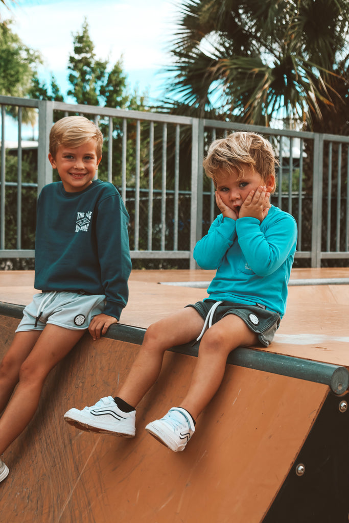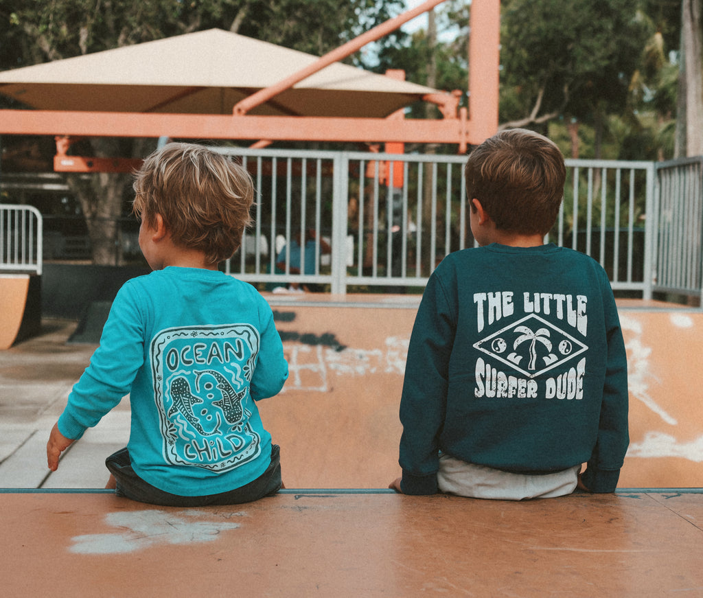 Cozy meets coastal. This crewneck is crafted to keep up with every wave, climb, and tumble. Small-batch made for lasting quality, it’s breathable yet warm — perfect for layering on breezy beach mornings or cool playground afternoons. Minimal design, surf-inspired spirit, and built for everyday adventure.