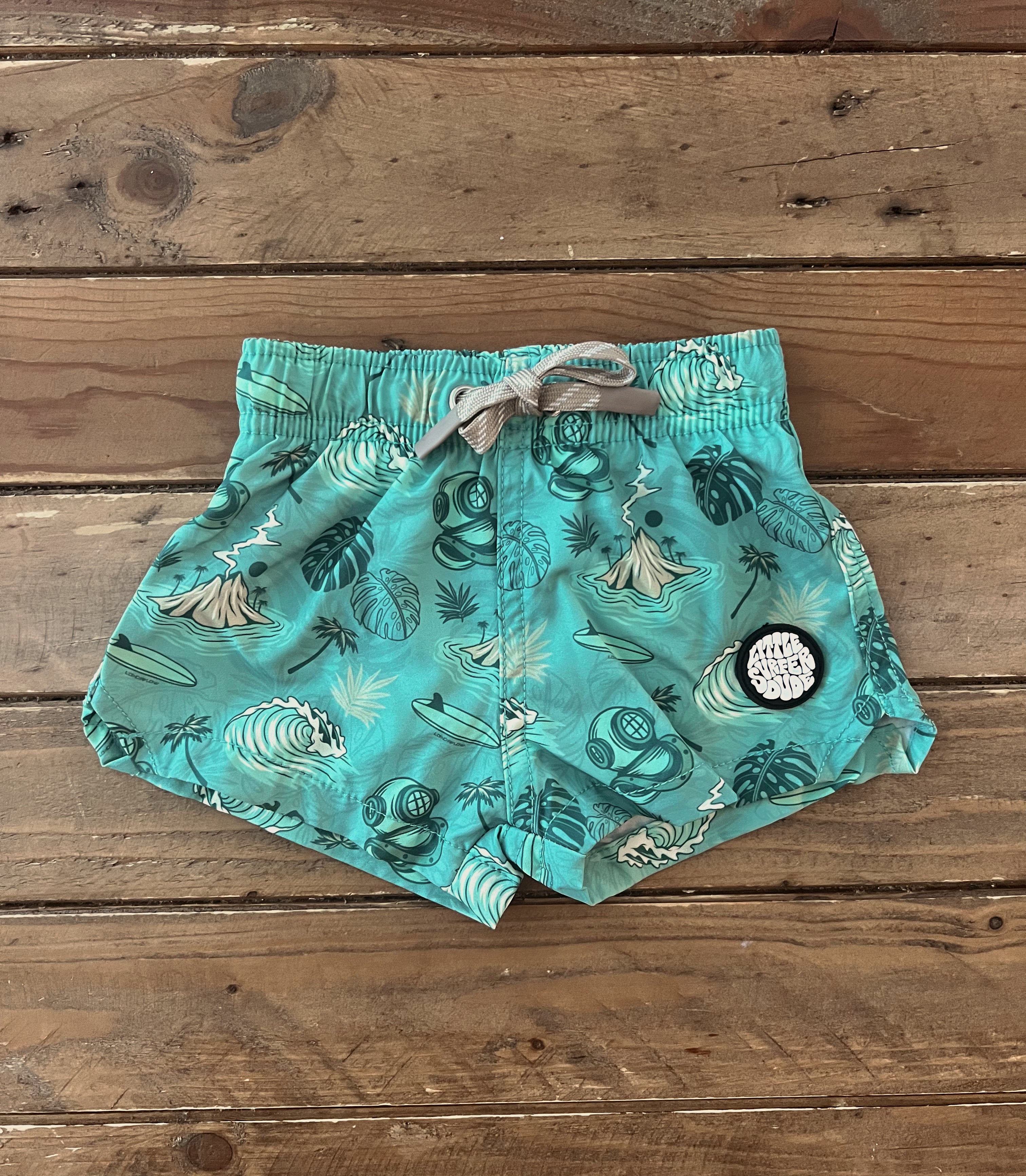 Deep Sea Explorer Little Surfer Dude Swim Trunks
