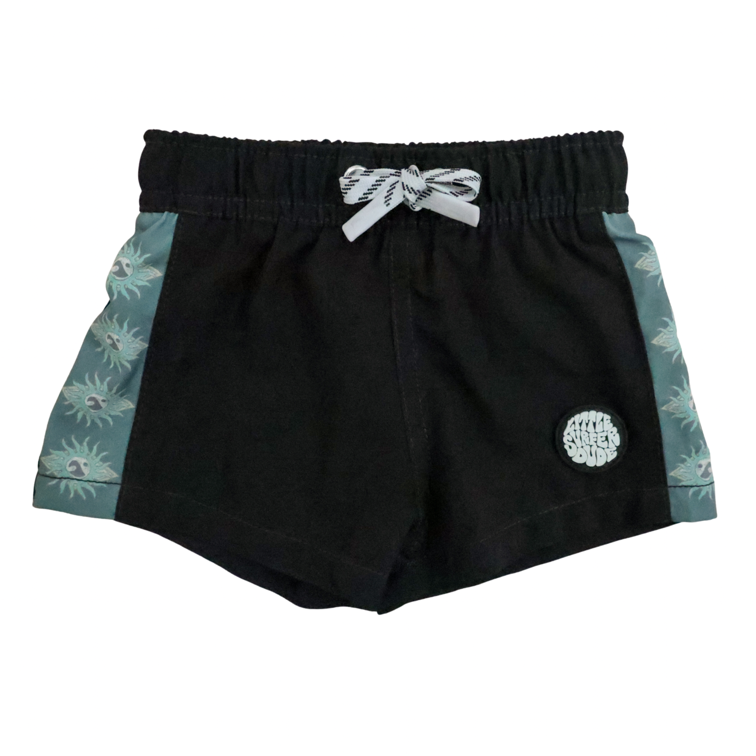Black Coastal Sol Little Surfer Dude Swim Trunks