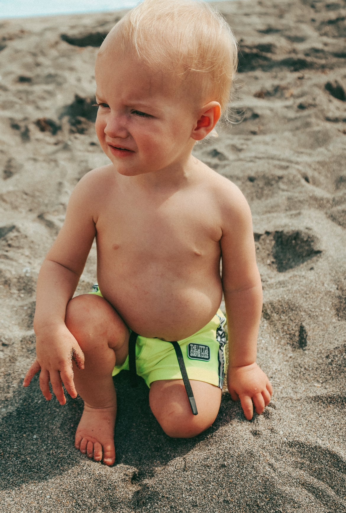 Neon High Visibility Little Surfer Dude Swim Trunks