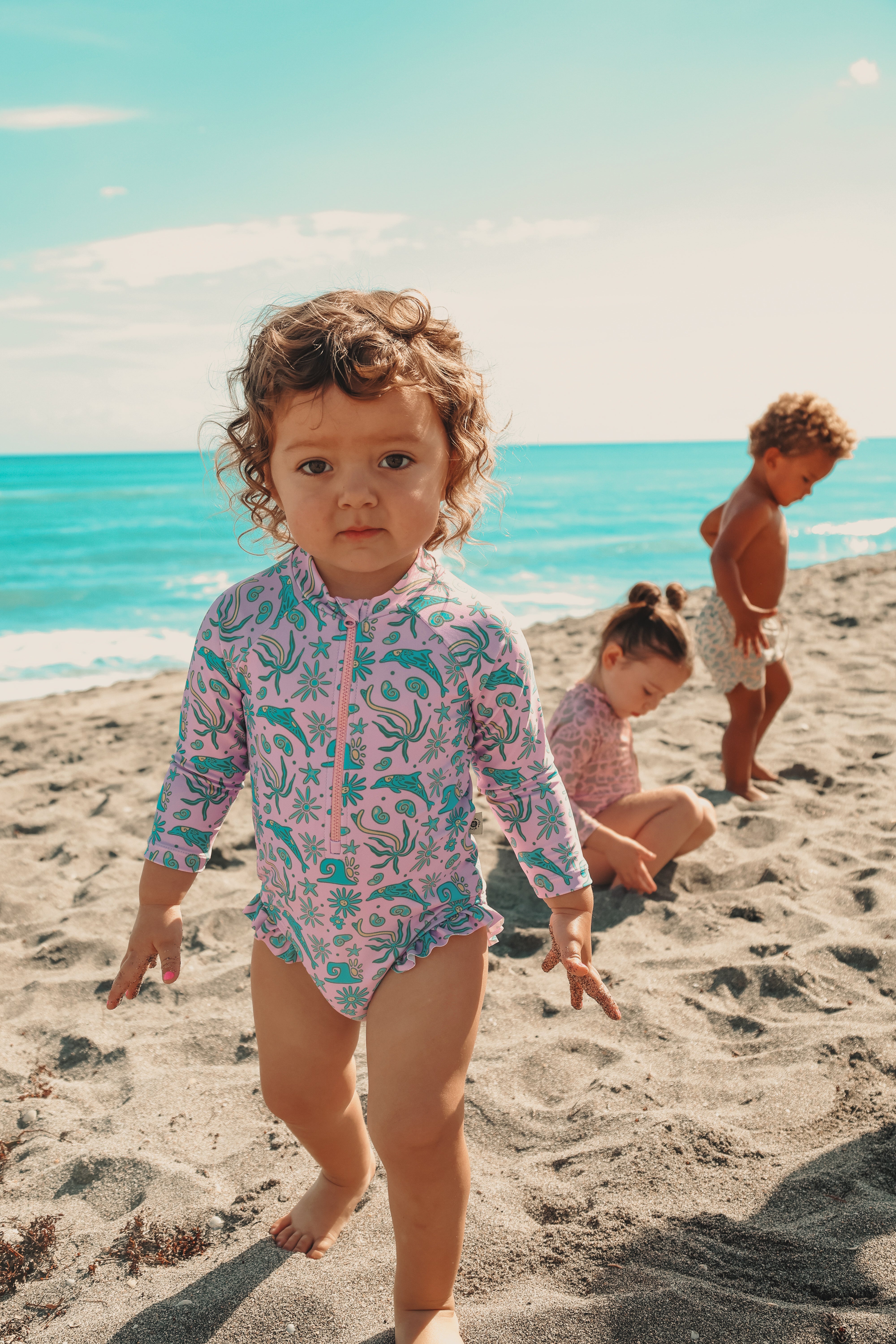 Pink Dolphin Long sleeve Little Surfer Girl logo swimsuit - 6-12 months is backordered and will ship as soon as it is back in stock.
