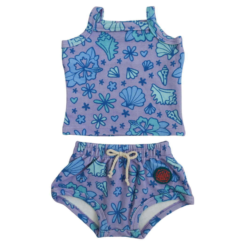 Purple Hibiscus Little Surfer Girl Two-Piece Set — the perfect outfit for tiny groms who live for beach days, breezy boardwalks, and coastal adventures.
