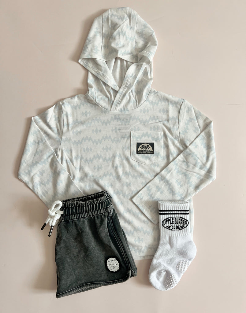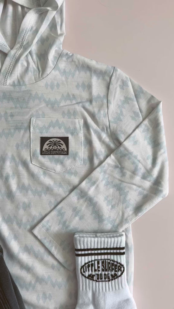 White Aztec UPF Little Surfer Dude Logo Hoodie