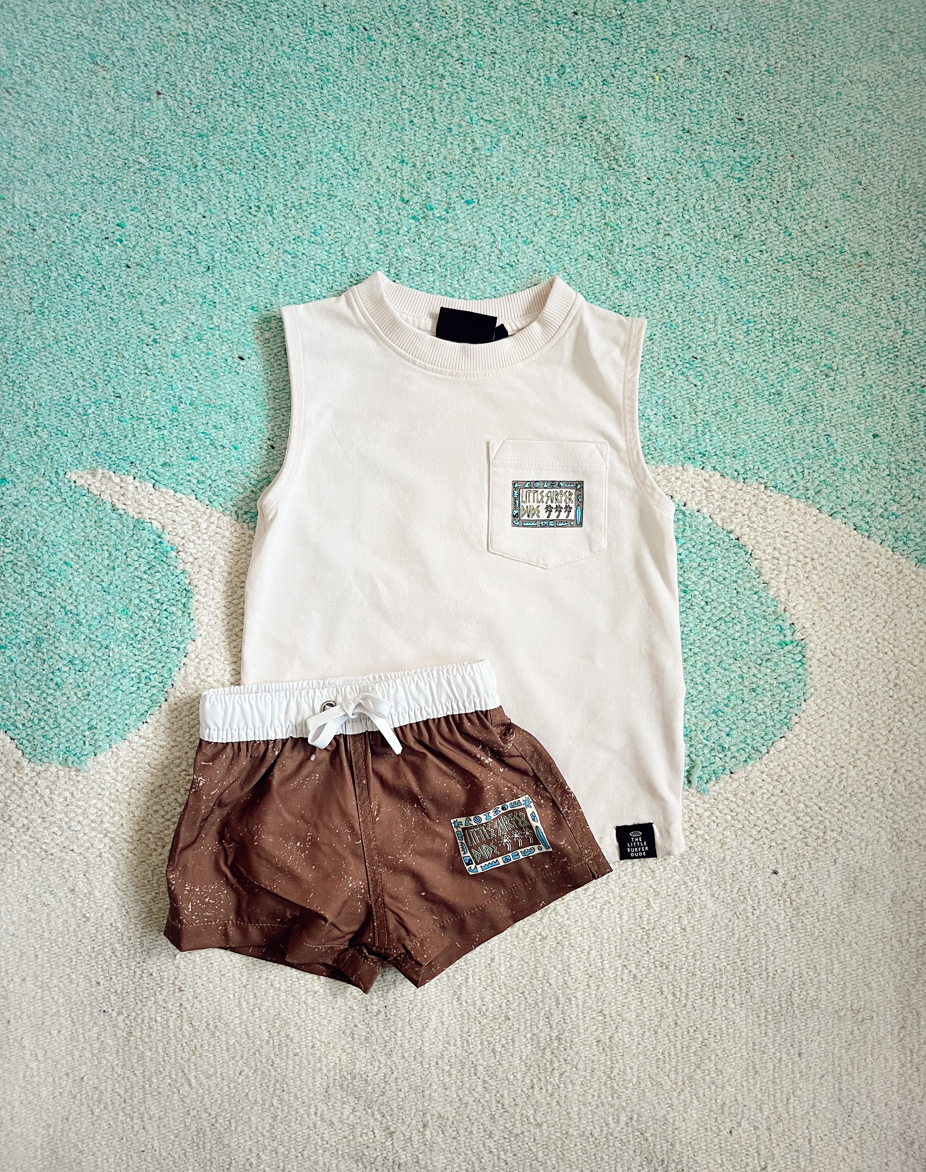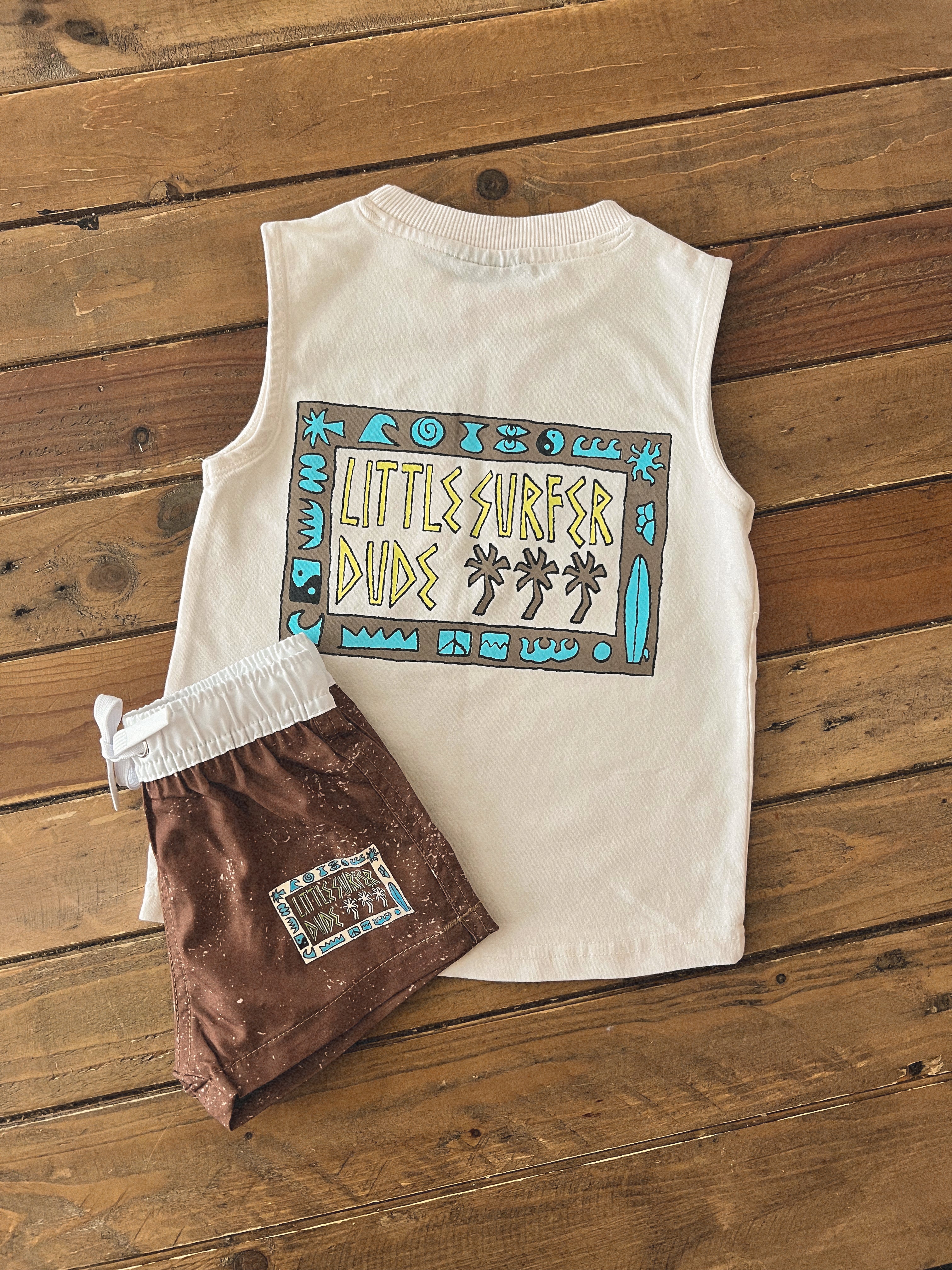 Pairs well with one of our Little Surfer Dude rashguards or hats.