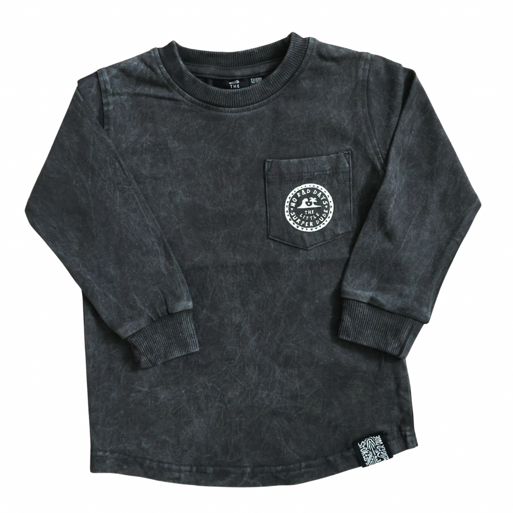 Black Acid Wash Little Surfer Dude Logo T-Shirt