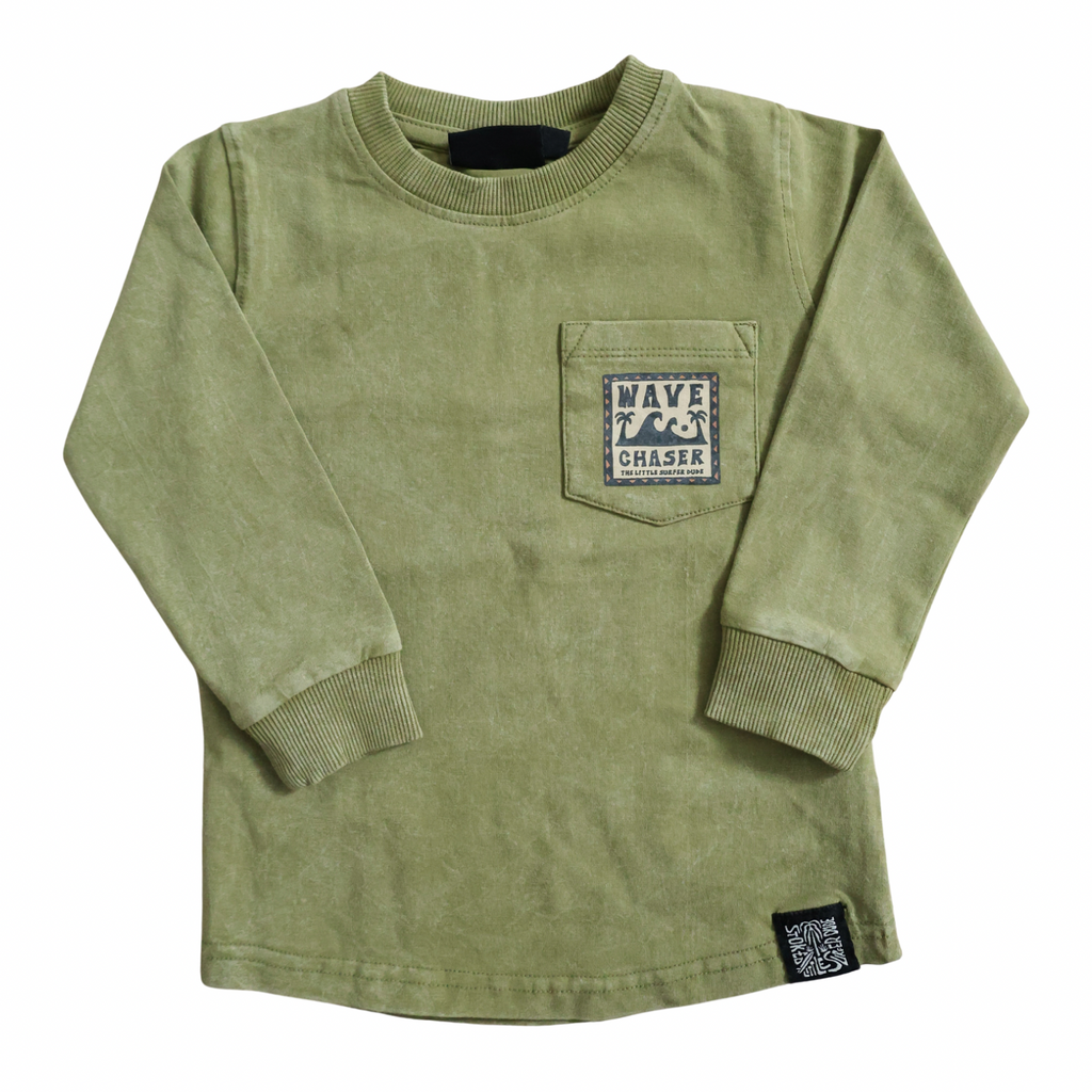 Green Wave Chaser Little Surfer Dude Long Sleeve Tee