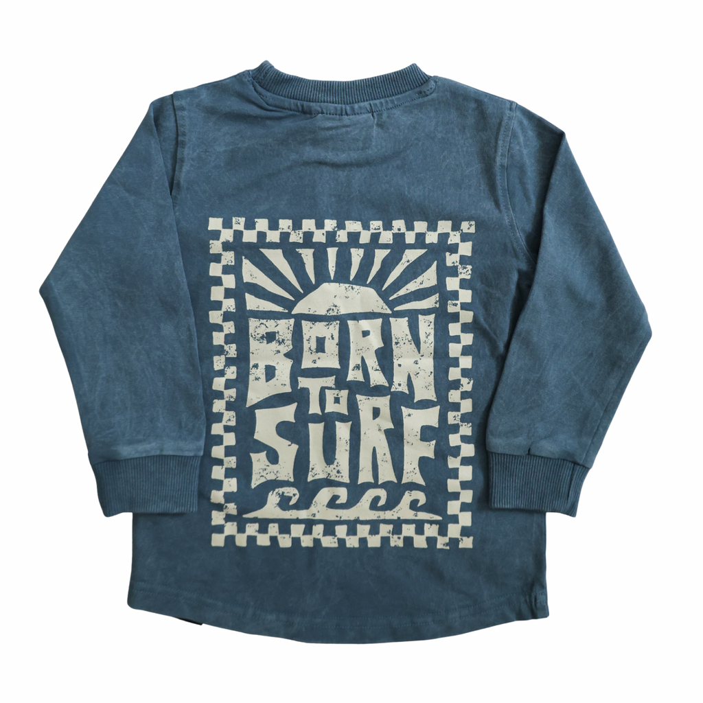 Blue Born To Surf Little Surfer Dude Long Sleeve Tee