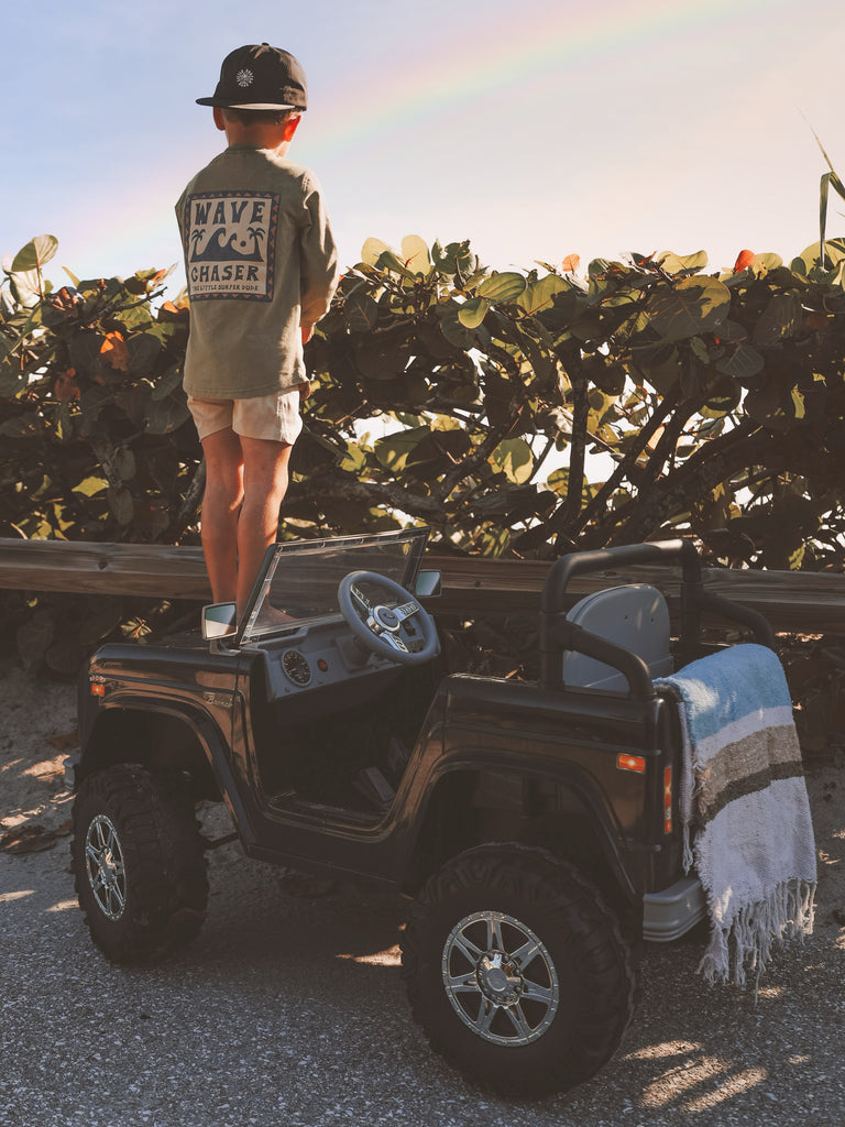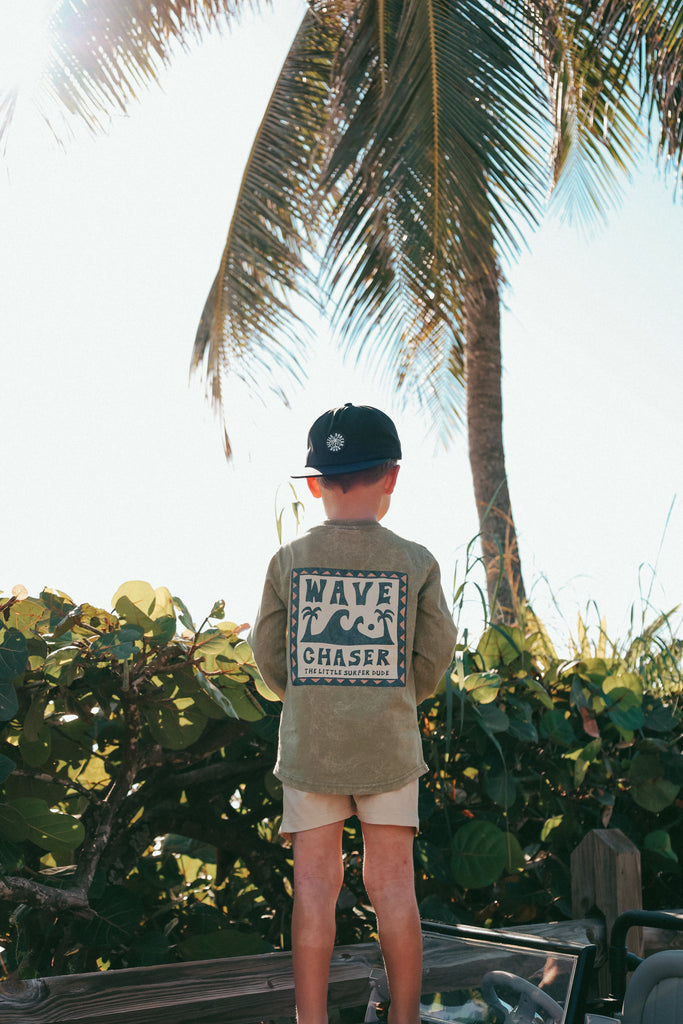 Green Wave Chaser Little Surfer Dude Long Sleeve Tee