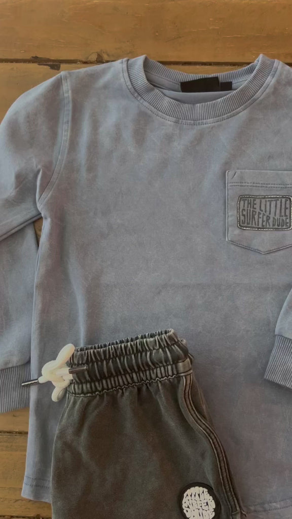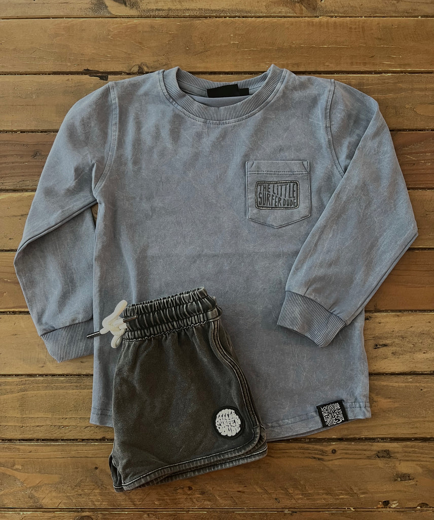 A surf-inspired essential made from a durable cotton-spandex blend. Small-batch crafted with a front pocket and clean graphic detail. Soft, stretchy, and built to last—your go-to layer from dawn patrol to playground.