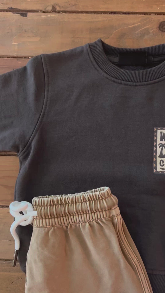 Cozy meets coastal. This crewneck is crafted to keep up with every wave, climb, and tumble. Small-batch made for lasting quality, it’s breathable yet warm — perfect for layering on breezy beach mornings or cool playground afternoons. Minimal design, surf-inspired spirit, and built for everyday adventure.