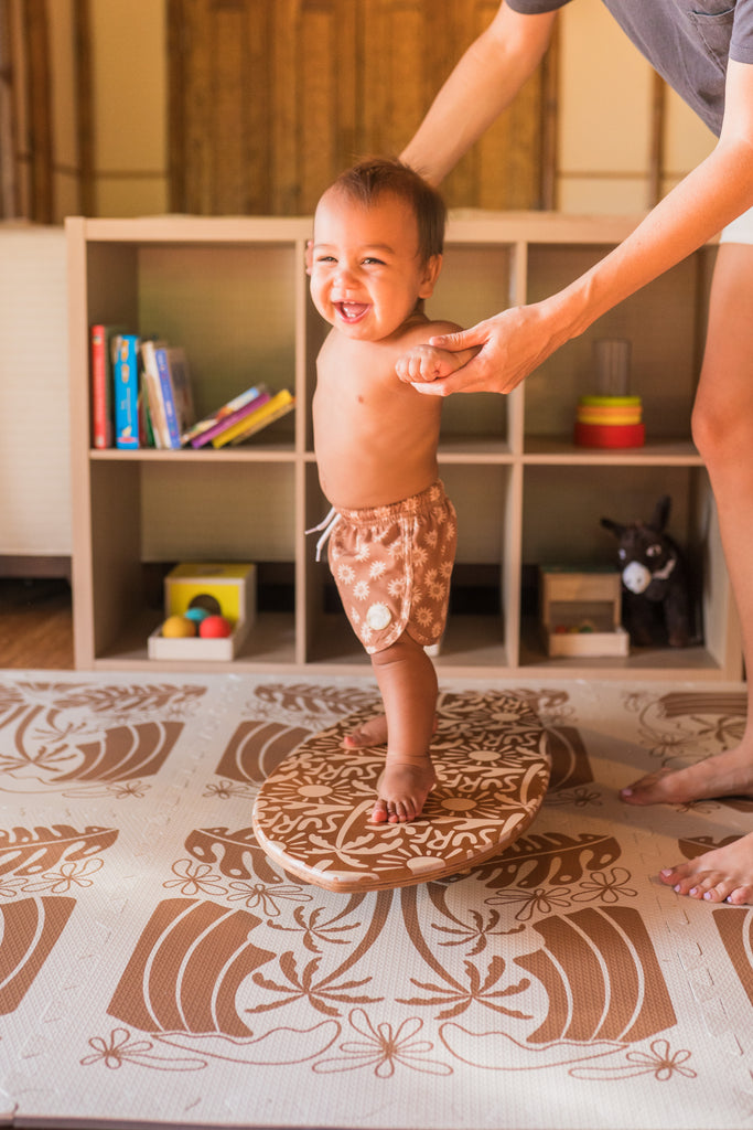 The Little Surfer Dude balance board was designed to help your little one develop the balance and form necessary before taking on their first wave. Its modern, minimalistic, and would compliment your little surfers nursery really well! It features a kid friendly rocker making it suitable for all skill levels.