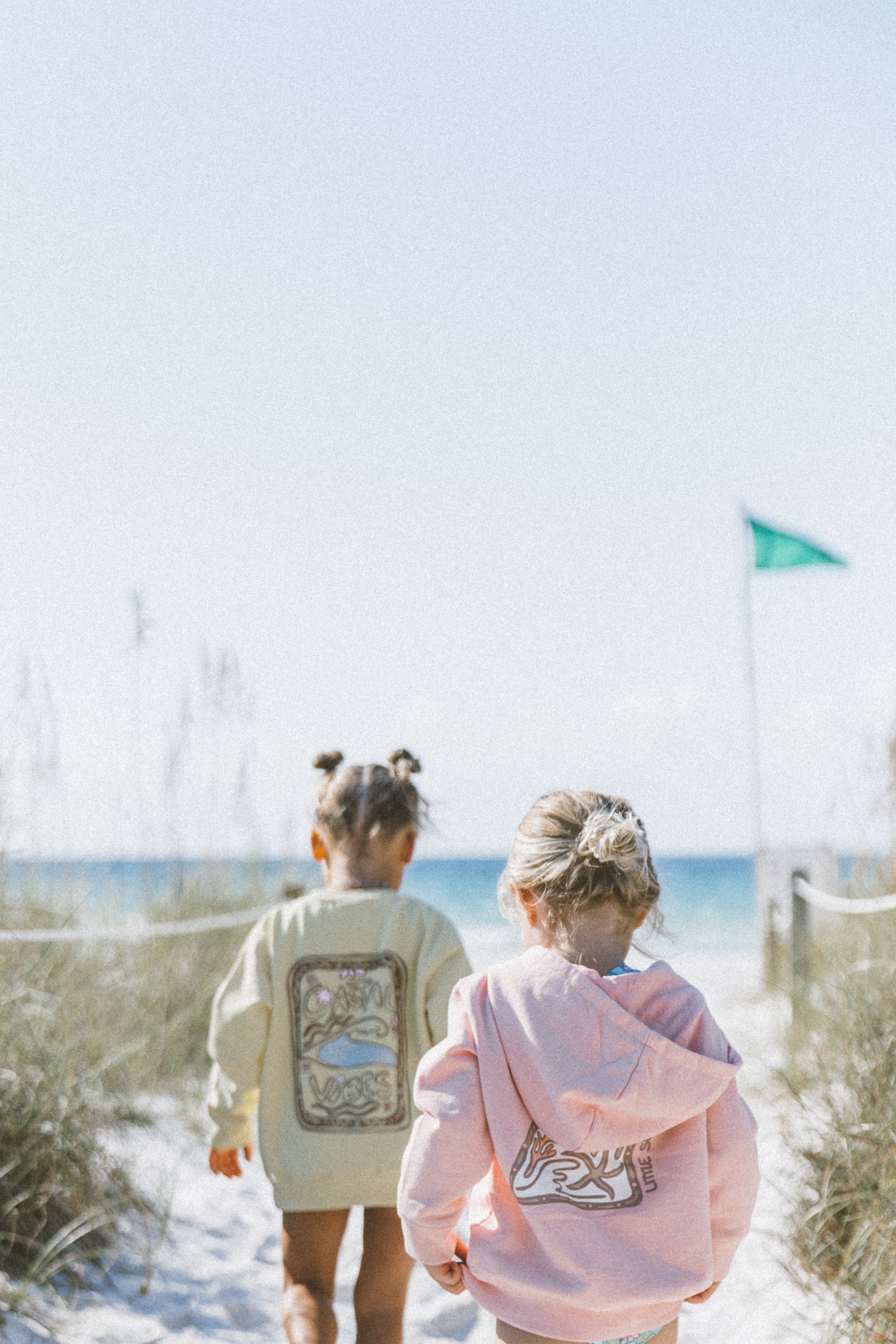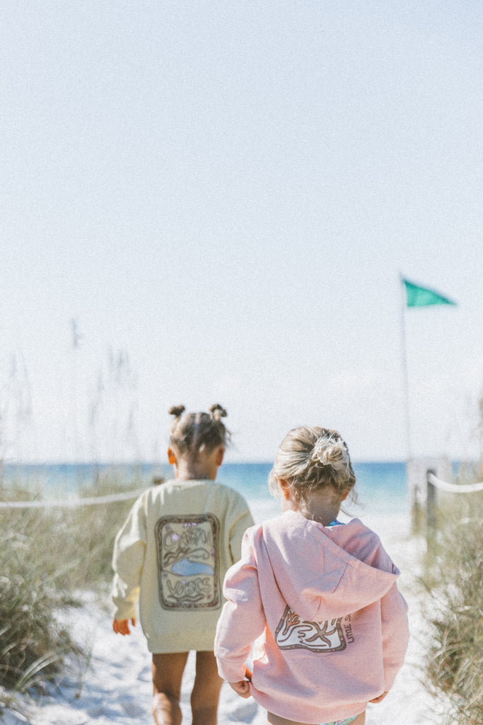 Cozy meets coastal. This crewneck is crafted to keep up with every wave, climb, and tumble. Small-batch made for lasting quality, it’s breathable yet warm — perfect for layering on breezy beach mornings or cool playground afternoons. Minimal design, surf-inspired spirit, and built for everyday adventure.