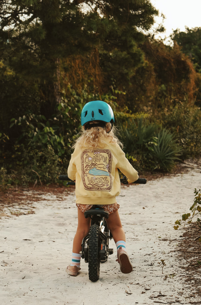 Yellow Coastal Vibes Little Surfer Girl Crewneck